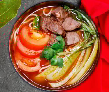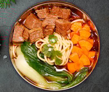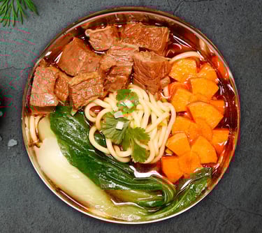 C'est un plat emblématique mêlant nouilles fraîches et morceaux de bœuf fondants, mijotés lentement dans un bouillon riche en épices et en herbes aromatiques. Ce plat réconfortant séduit par ses saveurs profondes, son parfum envoûtant et l'équilibre parfait entre tendreté de la viande et finesse du bouillon, offrant une expérience gustative chaleureuse et authentique. (avec bouillon)