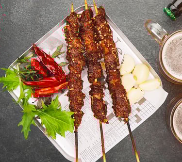 Morceaux tendres de bœuf ou d'agneau, marinés avec des épices maison, puis grillés à la perfection. Savoureux, juteux et pleins de caractère – un incontournable pour les amateurs de grillades.